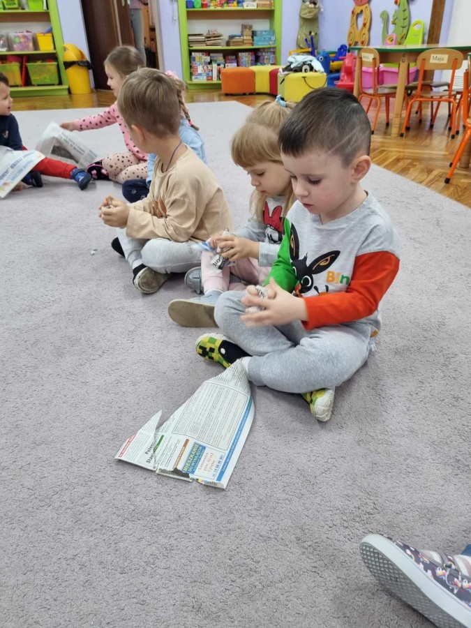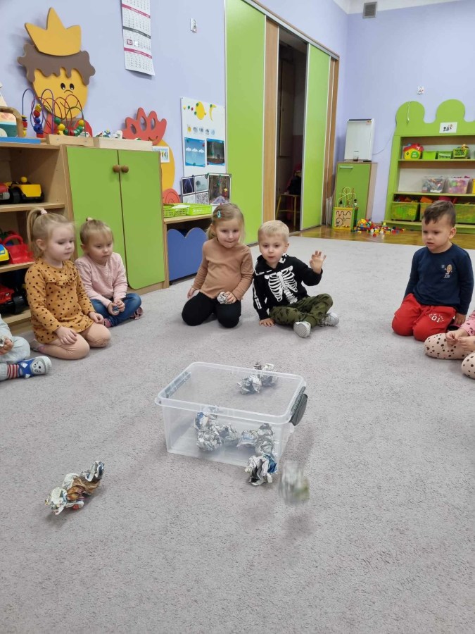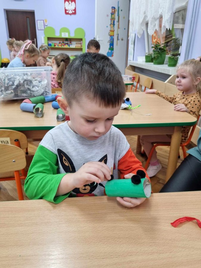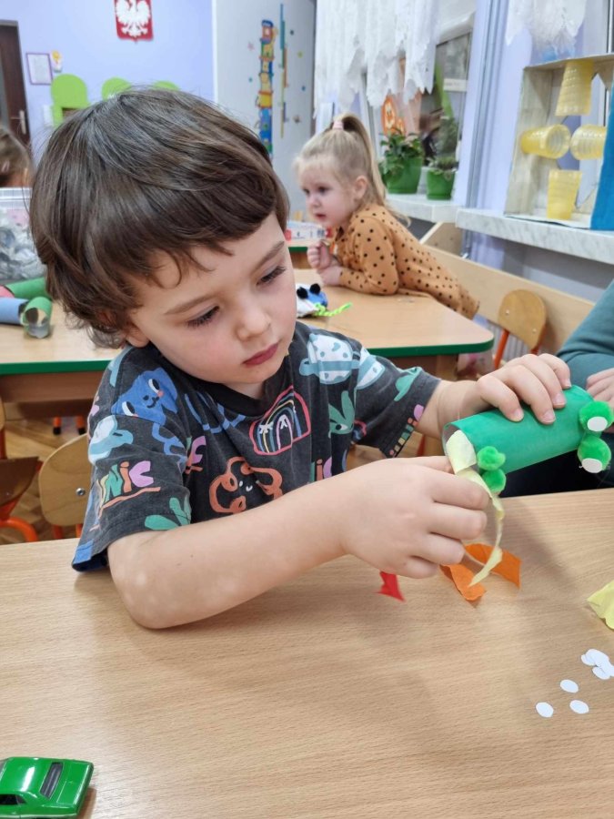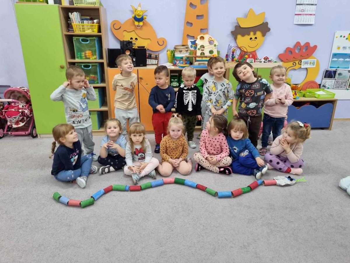 20.11-24.11.2023 grupa I Żabki w ciągu tygodnia kiedy za oknem “kapie, kropi , mży” dzieci do zabawy wykorzystały zrobione w p-lu Eko zabawki. Bawiliśmy się gazetami ,tekturowymi rolkami, pudełkami, plastikowymi butelkami i kubkami. zrobiliśmy też Eko węża i małe Eko smoki, które wykorzystaliśmy do ćwiczeń oddechowych .Super bawiliśmy się Eko zabawkami.