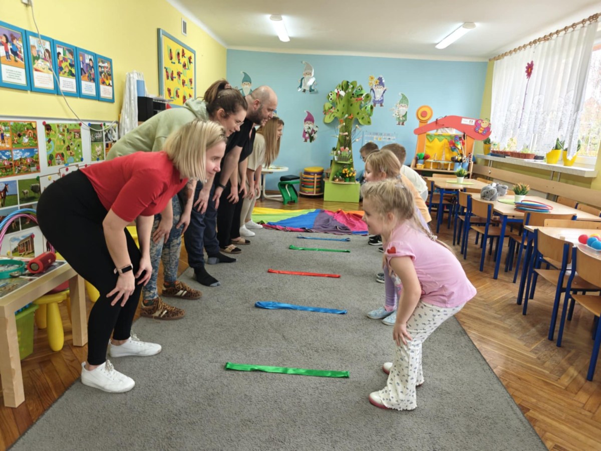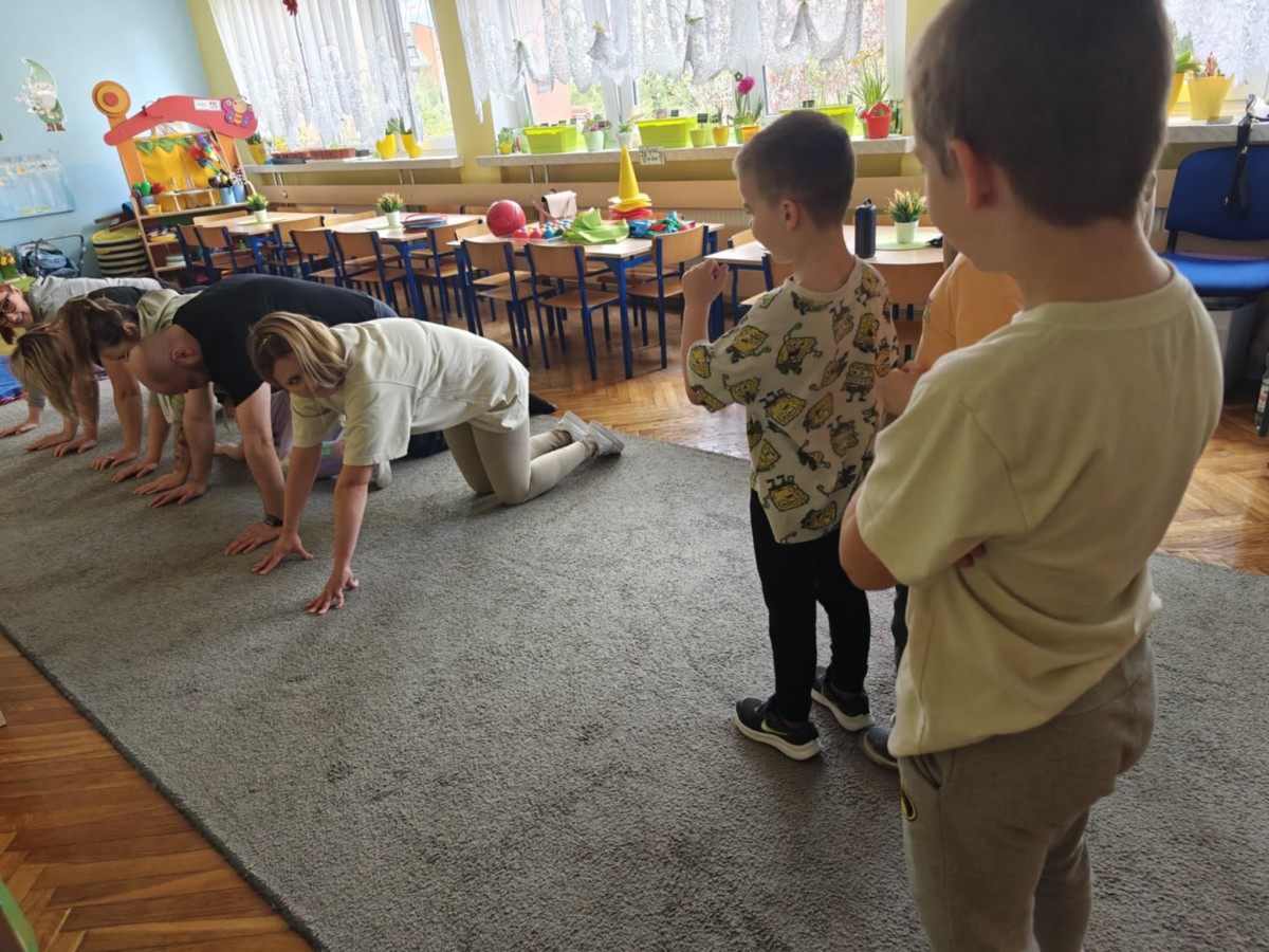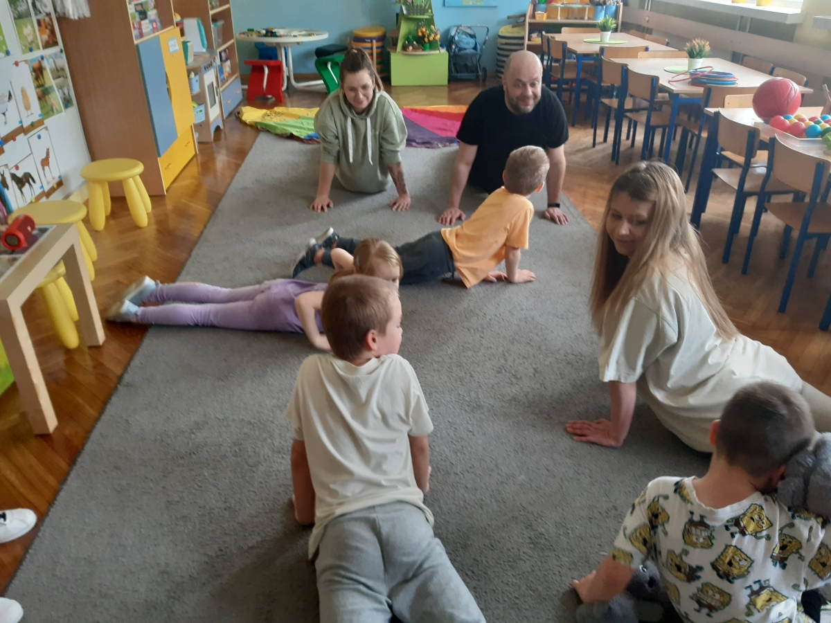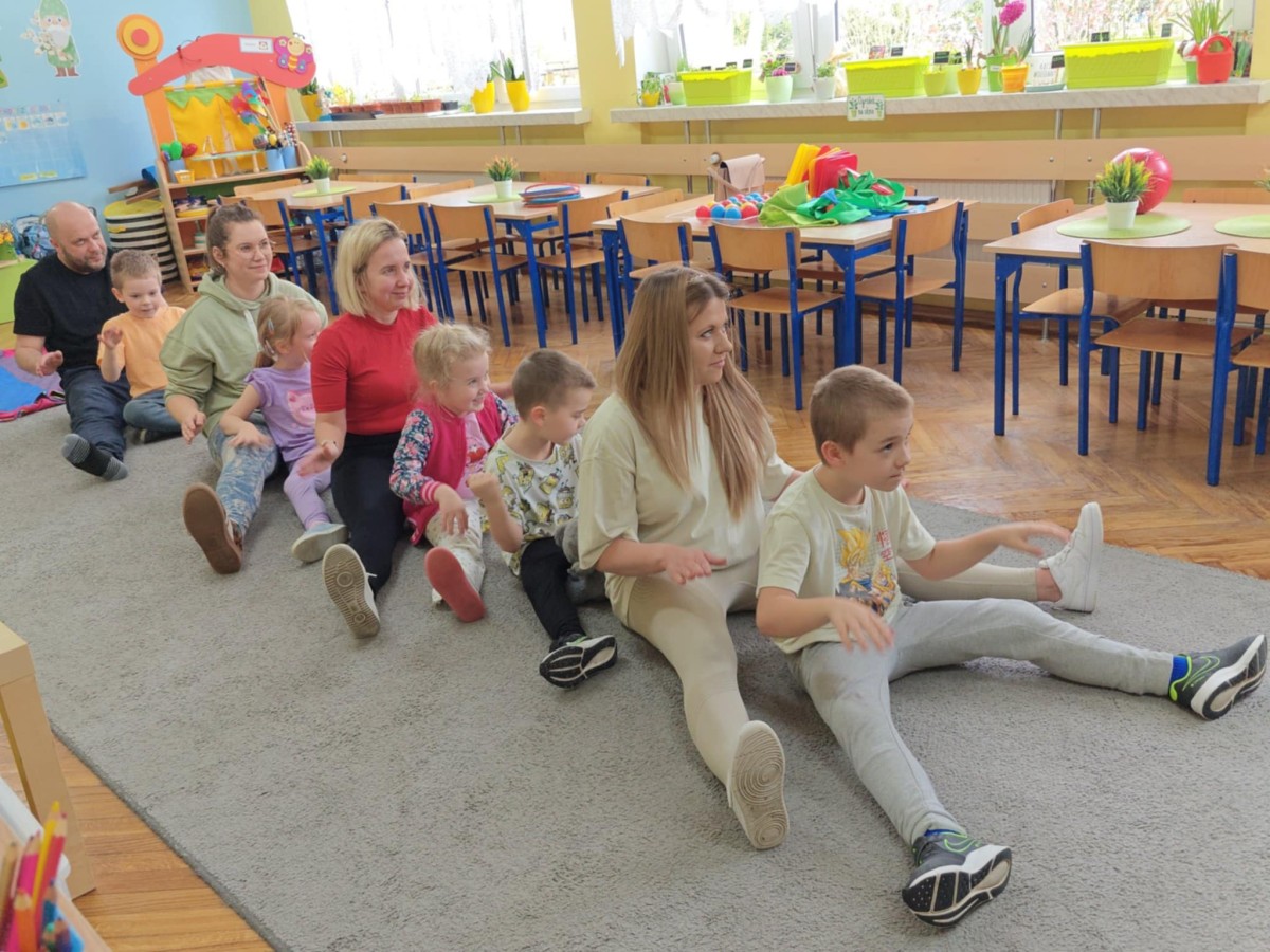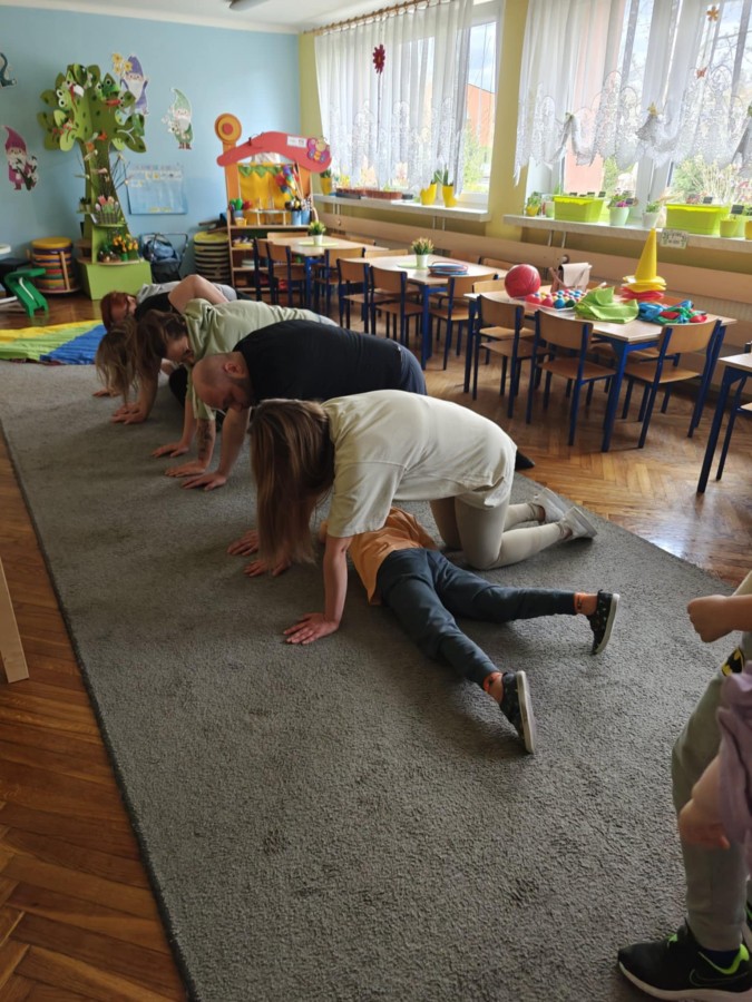 Dnia 9 kwietnia w grupie Biedronek odbyły się zajęcia otwarte dla Rodziców pod hasłem Rodzinna Gimnastyka. Miały one na celu promowanie zdrowego stylu życia, wzmacnianie więzi rodzinnych poprzez wspólną zabawę. Wszyscy w pełni zaangażowali się w proponowane zabawy i ćwiczenia. Uczestnikom zajęć towarzyszyło dużo pozytywnej energii, uśmiechu i radości, a nam przygotowującym zajęcia – satysfakcja i pewność, że idziemy w dobrym kierunku. Dziękujemy za wspólny czas i świetną atmosferę.