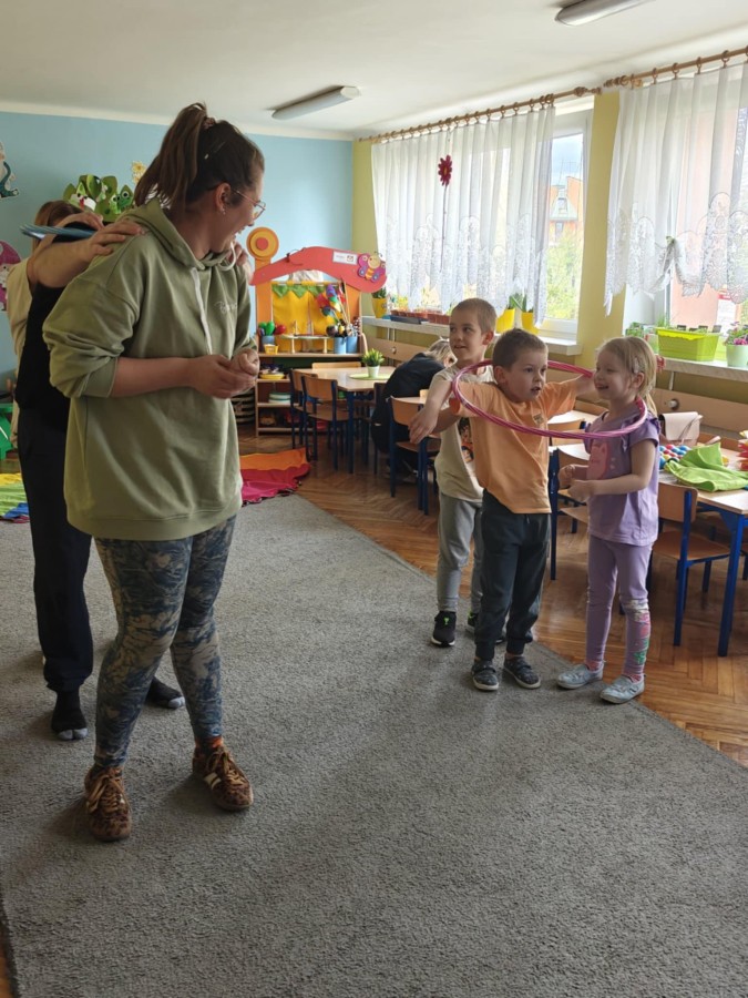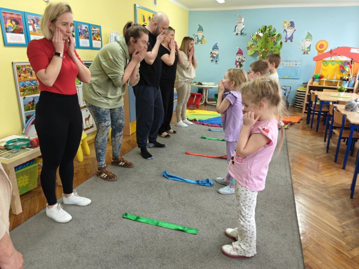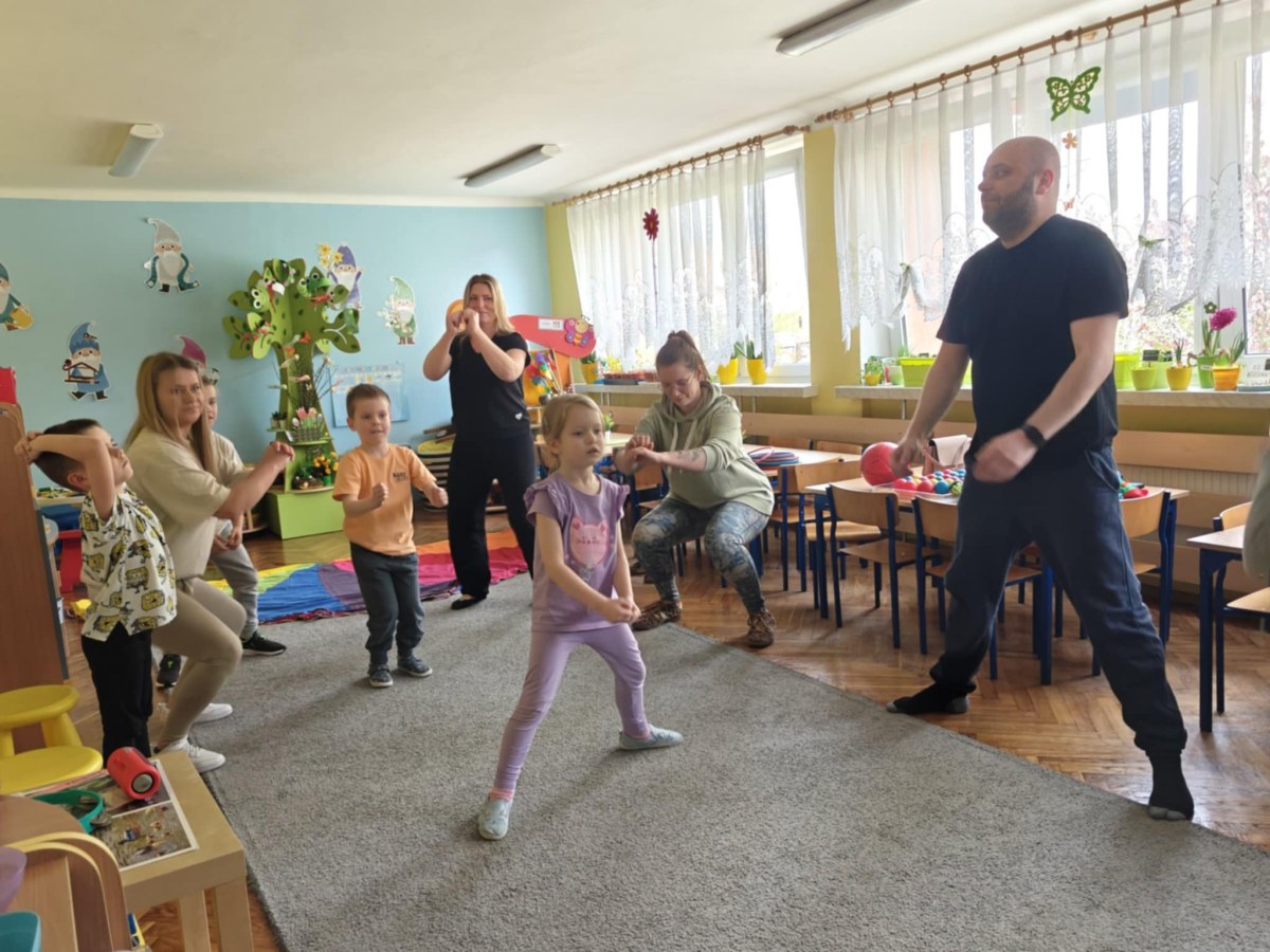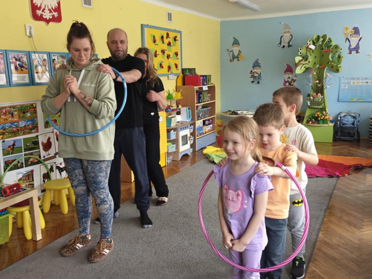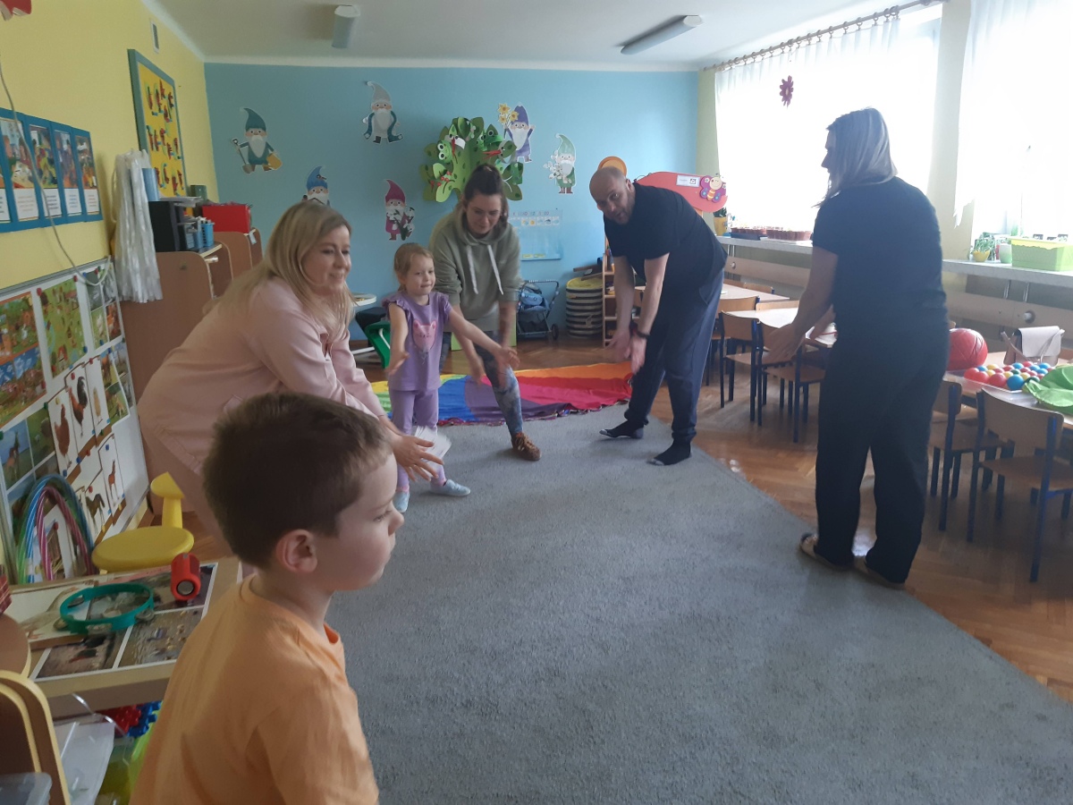 Dnia 9 kwietnia w grupie Biedronek odbyły się zajęcia otwarte dla Rodziców pod hasłem Rodzinna Gimnastyka. Miały one na celu promowanie zdrowego stylu życia, wzmacnianie więzi rodzinnych poprzez wspólną zabawę. Wszyscy w pełni zaangażowali się w proponowane zabawy i ćwiczenia. Uczestnikom zajęć towarzyszyło dużo pozytywnej energii, uśmiechu i radości, a nam przygotowującym zajęcia – satysfakcja i pewność, że idziemy w dobrym kierunku. Dziękujemy za wspólny czas i świetną atmosferę.
