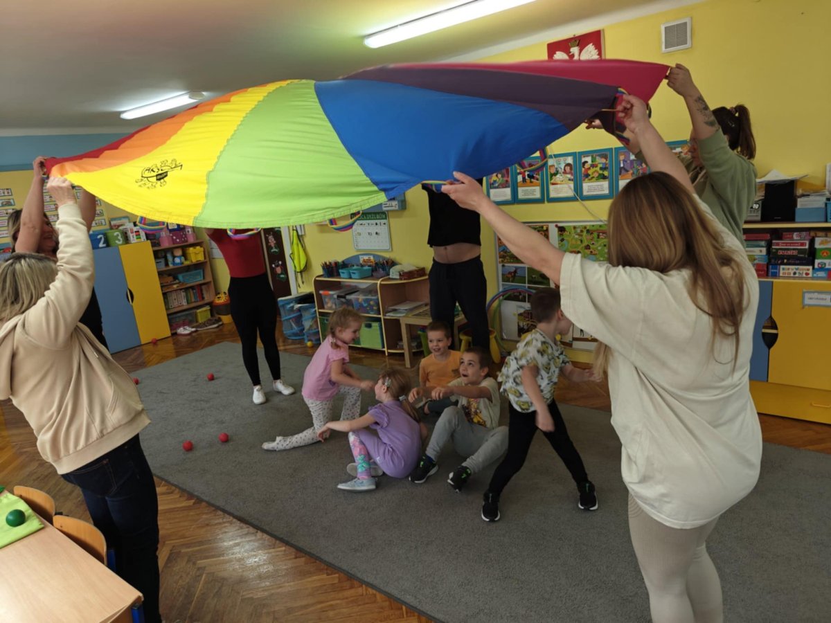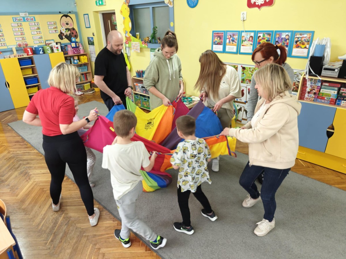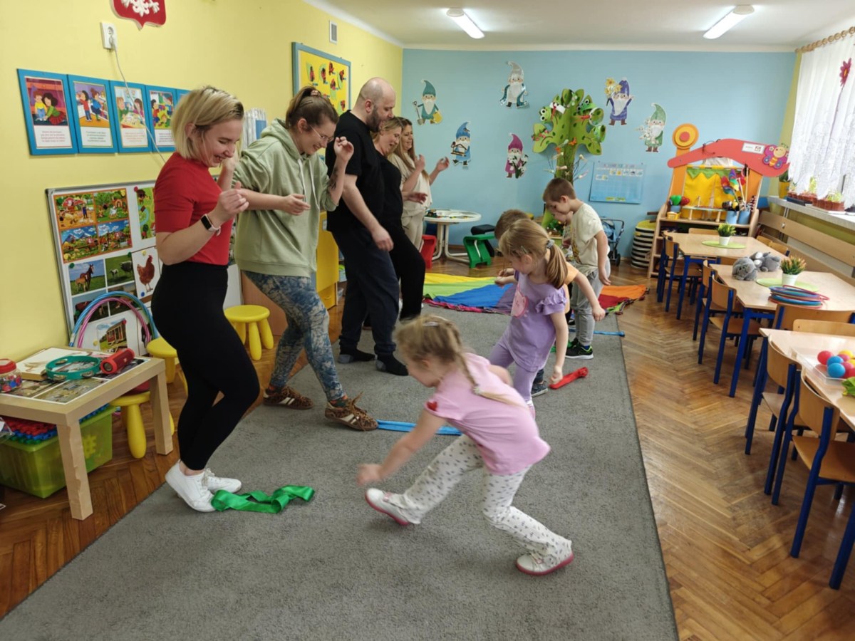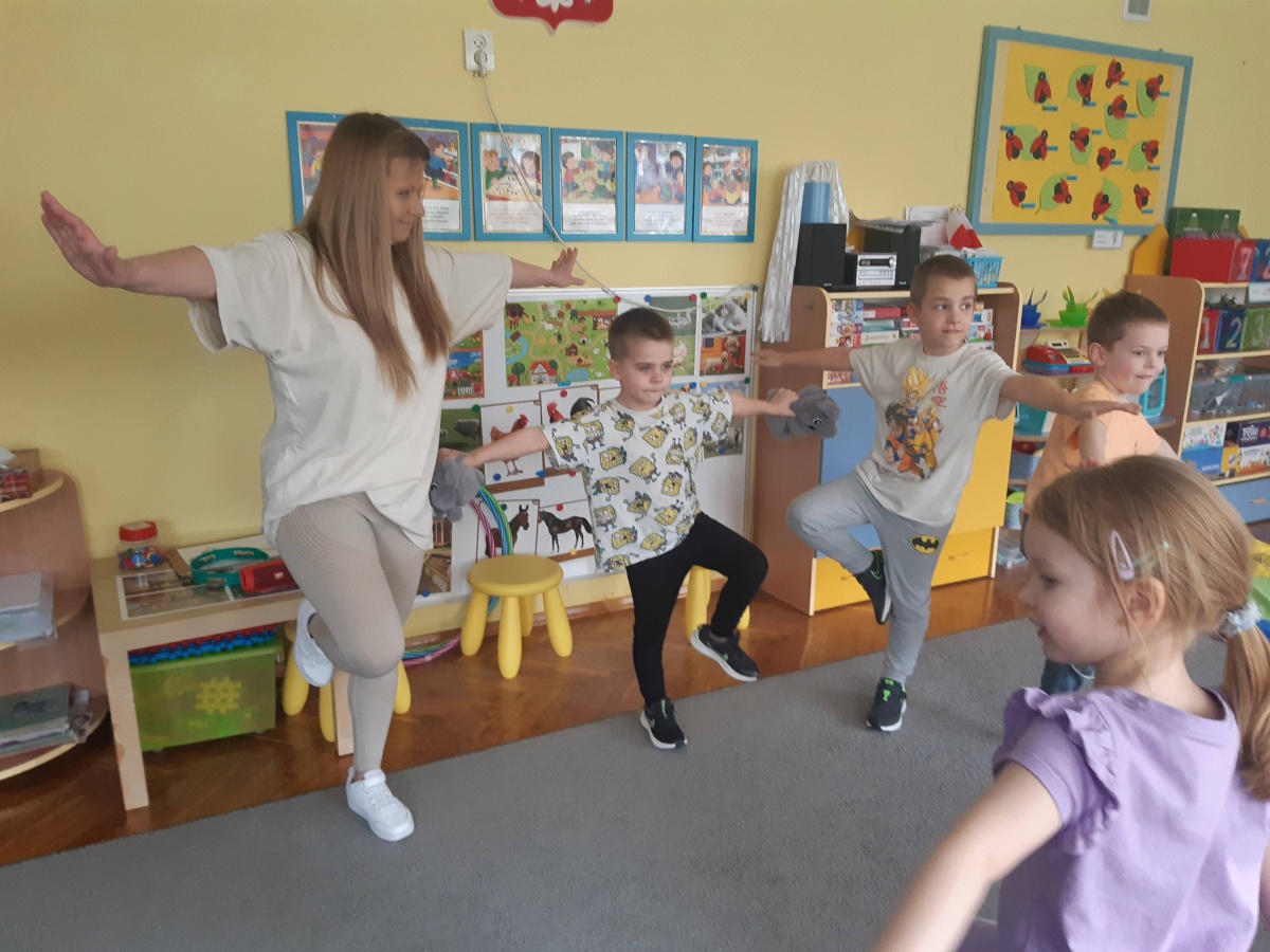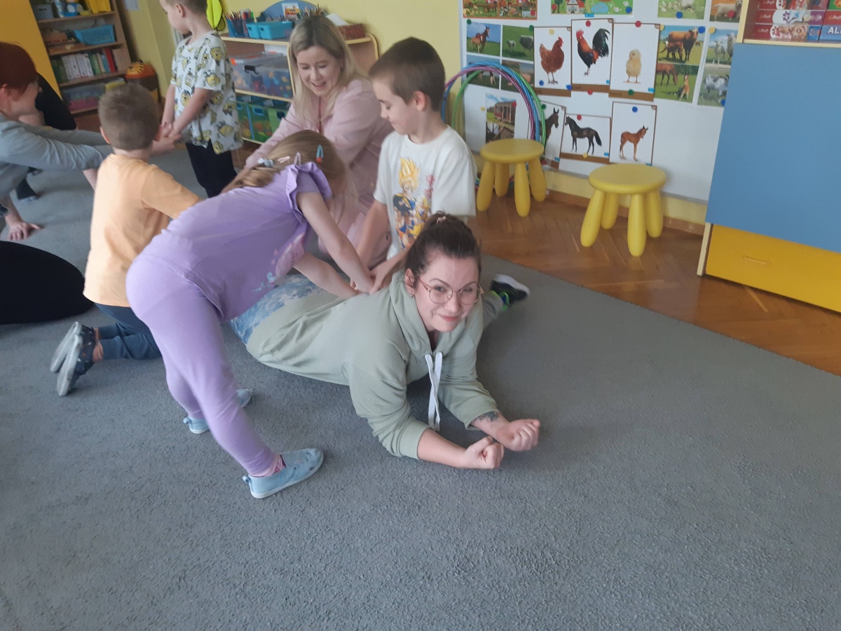 Dnia 9 kwietnia w grupie Biedronek odbyły się zajęcia otwarte dla Rodziców pod hasłem Rodzinna Gimnastyka. Miały one na celu promowanie zdrowego stylu życia, wzmacnianie więzi rodzinnych poprzez wspólną zabawę. Wszyscy w pełni zaangażowali się w proponowane zabawy i ćwiczenia. Uczestnikom zajęć towarzyszyło dużo pozytywnej energii, uśmiechu i radości, a nam przygotowującym zajęcia – satysfakcja i pewność, że idziemy w dobrym kierunku. Dziękujemy za wspólny czas i świetną atmosferę.