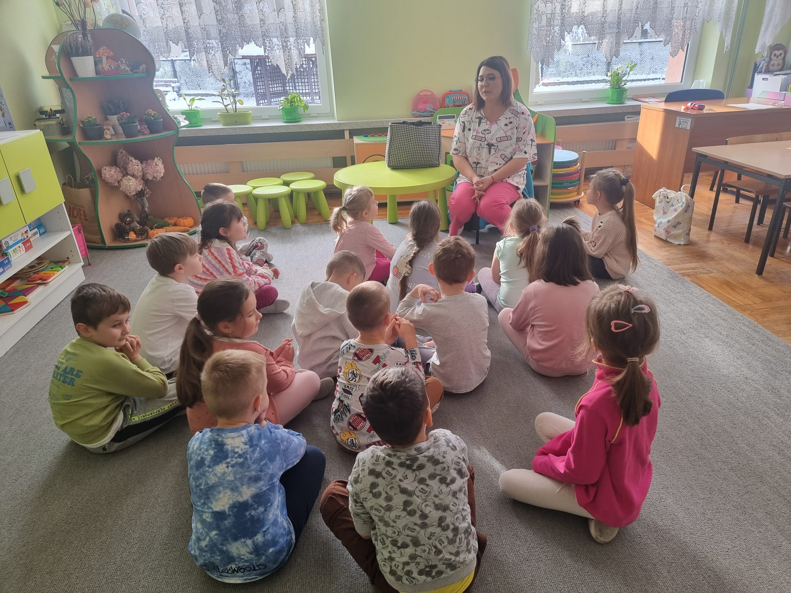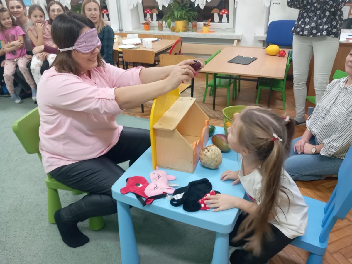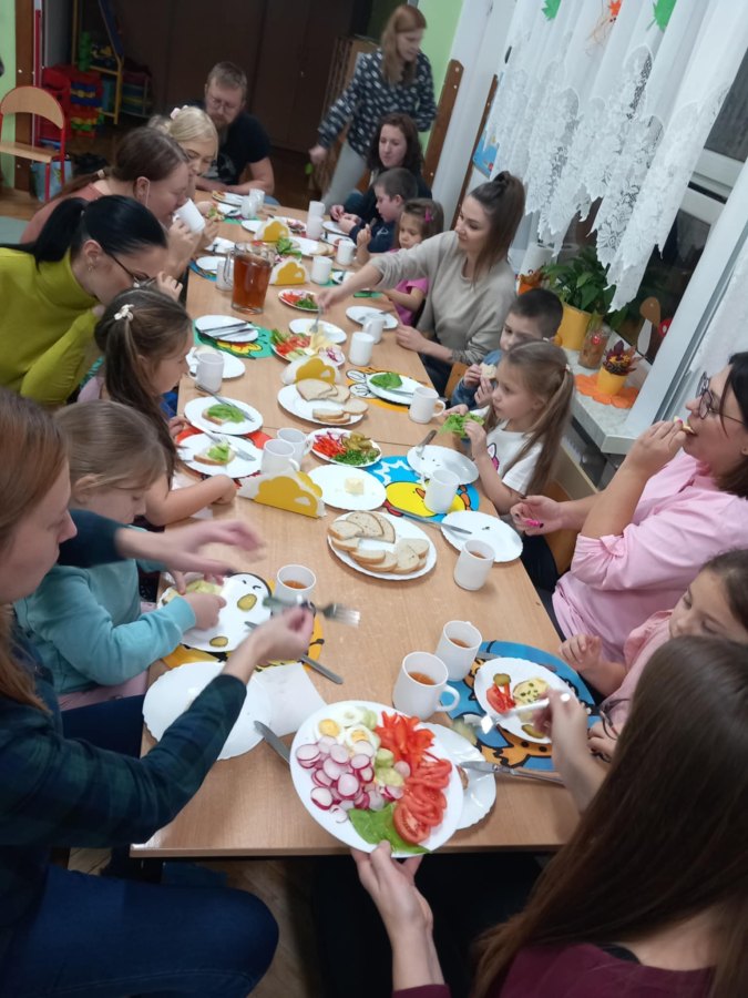 28 listopada w grupie Motylki odbyły się zajęcia otwarte dla rodziców “Dzień zdrowego jedzenia”. Dzieci przypomniały, co jest ważne dla zdrowia, odgadywały zagadki słowne o owocach i warzywach, wspólnie z rodzicami bawiły się przy piosence “Marchewka Maja”, były też widzami inscenizacji wiersza Jana Brzechwy “Pomidorek”. Nie zabrakło też zagadek dotykowych, dzieci i dorośli odgadywali z zasłoniętymi oczami co to warzywo czy owoc. Później wszyscy zatańczyli przy piosence “Umyj ręce”, po czym umyli je w łazience. Na koniec przedszkolaki i rodzice wykonali zdrowe kanapki i zjedli je popijając pyszną herbatą.”