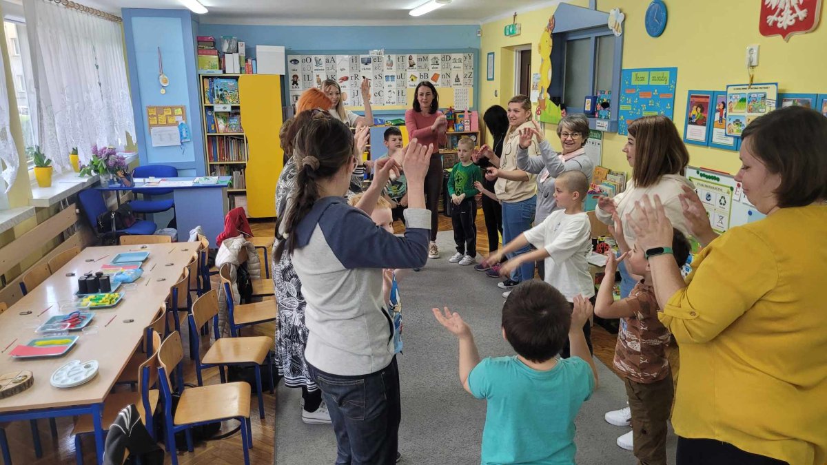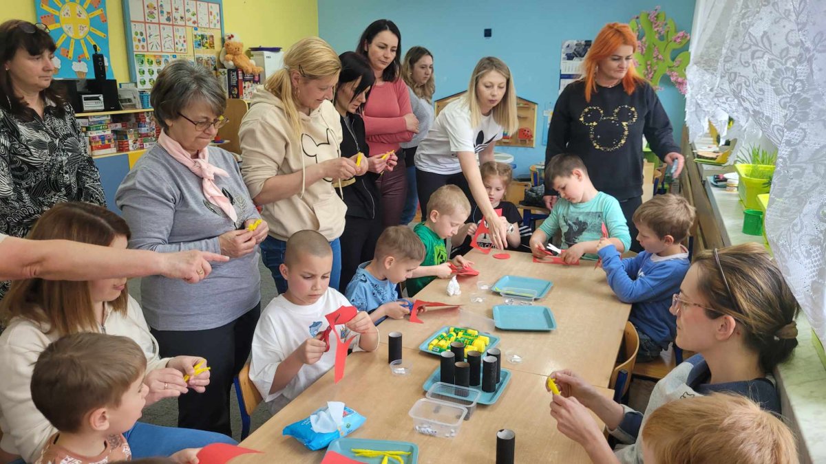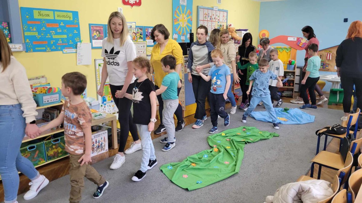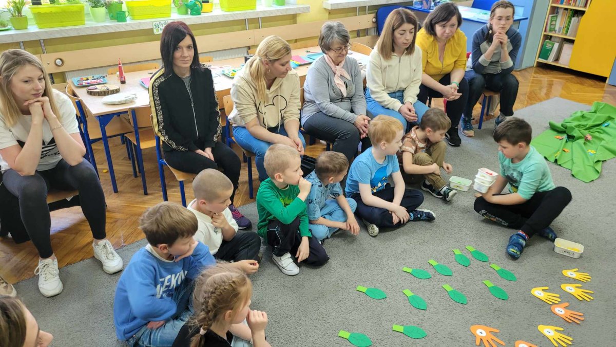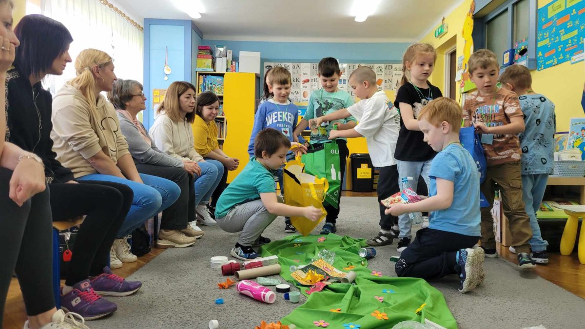 Podczas zabaw z Rodzicami dzieci utrwaliły sobie wiadomości dotyczące segregowania odpadów i możliwości ich ponownego przetwarzania na nowe przedmioty. Wspólnie przypomnieliśmy sobie zasady dbania o nasze najbliższe środowisko. Na zakończenie dzieci razem z Rodzicami zrobiły EKO -ZABAWKĘ z rurki po papierze toaletowym- “Szczęśliwą Biedronkę “, a z pomalowanych farbami kamyków biedronki i pszczółki do EKO – GRY – “Na łące”. Wszystkim Rodzicom DZIĘKUJEMY !!! za wspólną, wesołą zabawę”.