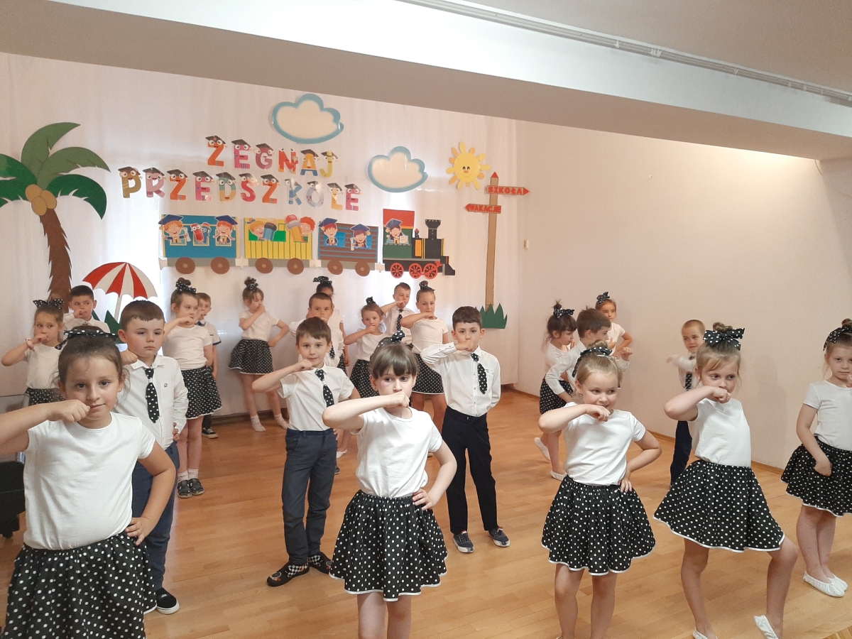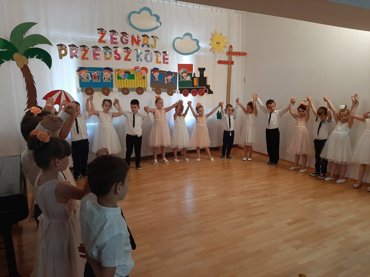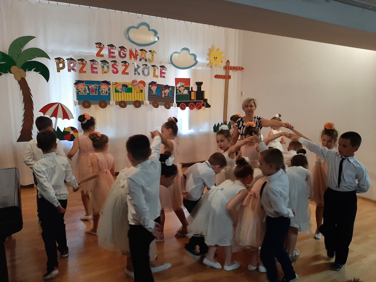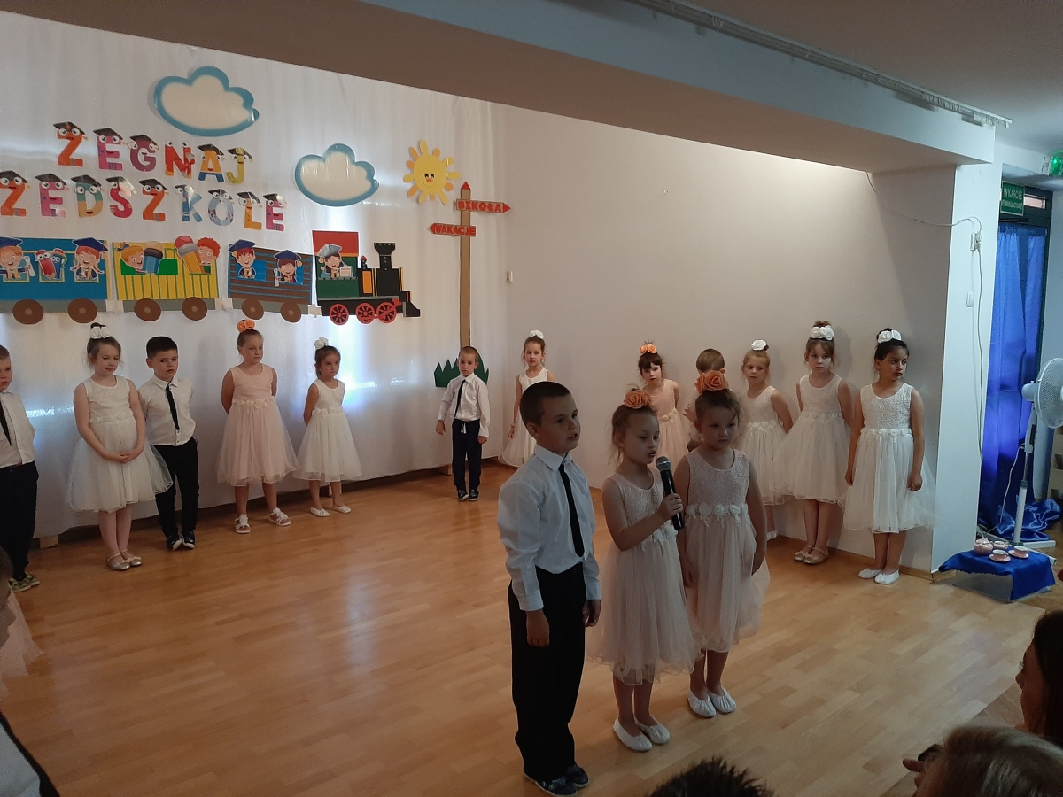 Dnia 20. 06. 2023r odbyła się uroczystość Pożegnania Przedszkola przez starszaków z grupy V Żabki. W przedstawieniu ,,Kącik serc’’ wspomniały zabawy w przedszkolnych kącikach, beztroski czas pobytu w przedszkolu. Następnie dostojnym Polonezem rozpoczęły oficjalną część pożegnania z przedszkolem i podziękowania Dyrekcji , Nauczycielom, Pracownikom za wspólnie spędzone cztery lata. Na zakończenie Pani Dyrektor wręczyła dzieciom dyplomy i upominki oraz podziękowała Rodzicom za wieloletnią współpracę. Rodzice wychowanków na pamiątkę pobytu dzieci w przedszkolu ufundowali i posadzili Drzewko Absolwenta. Następnie wszyscy Goście oraz dzieci zostali zaproszeni na poczęstunek podczas którego wspomnieniom nie było końca. DZIĘKUJEMY!!! PAMIĘTAJCIE O NAS!!! Życzymy słonecznych i bezpiecznych Wakacji!!!
