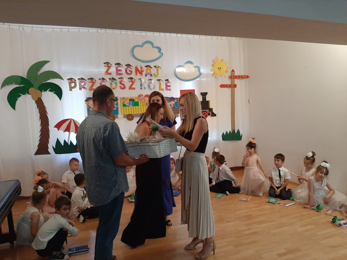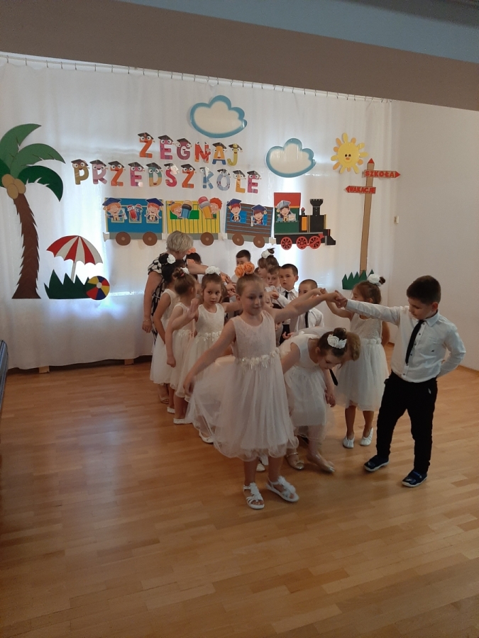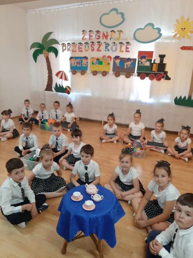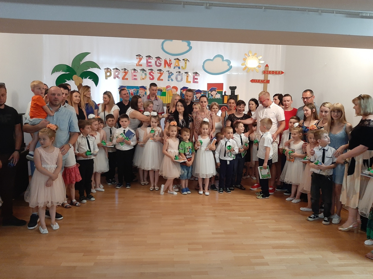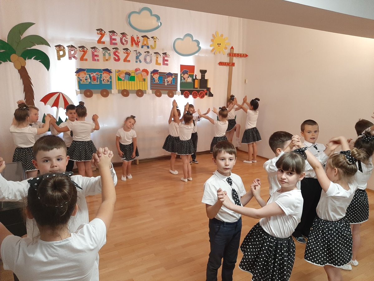 Dnia 20. 06. 2023r odbyła się uroczystość Pożegnania Przedszkola przez starszaków z grupy V Żabki. W przedstawieniu ,,Kącik serc’’ wspomniały zabawy w przedszkolnych kącikach, beztroski czas pobytu w przedszkolu. Następnie dostojnym Polonezem rozpoczęły oficjalną część pożegnania z przedszkolem i podziękowania Dyrekcji , Nauczycielom, Pracownikom za wspólnie spędzone cztery lata. Na zakończenie Pani Dyrektor wręczyła dzieciom dyplomy i upominki oraz podziękowała Rodzicom za wieloletnią współpracę. Rodzice wychowanków na pamiątkę pobytu dzieci w przedszkolu ufundowali i posadzili Drzewko Absolwenta. Następnie wszyscy Goście oraz dzieci zostali zaproszeni na poczęstunek podczas którego wspomnieniom nie było końca. DZIĘKUJEMY!!! PAMIĘTAJCIE O NAS!!! Życzymy słonecznych i bezpiecznych Wakacji!!!