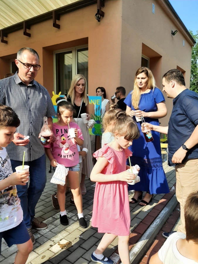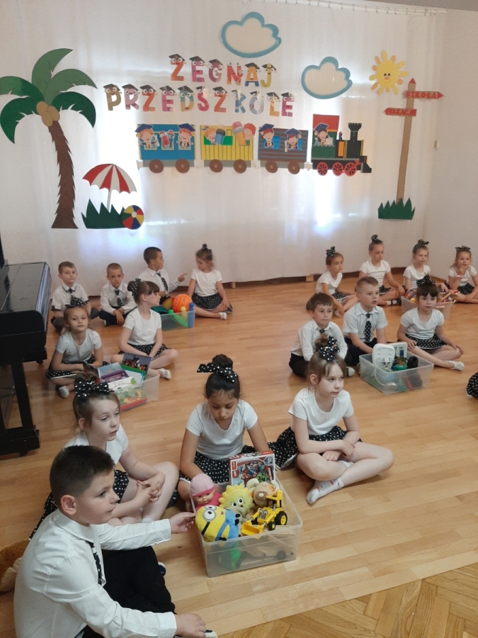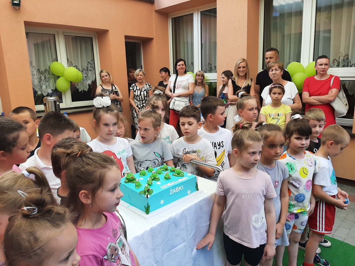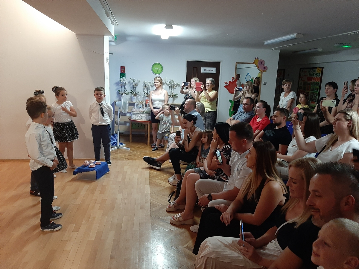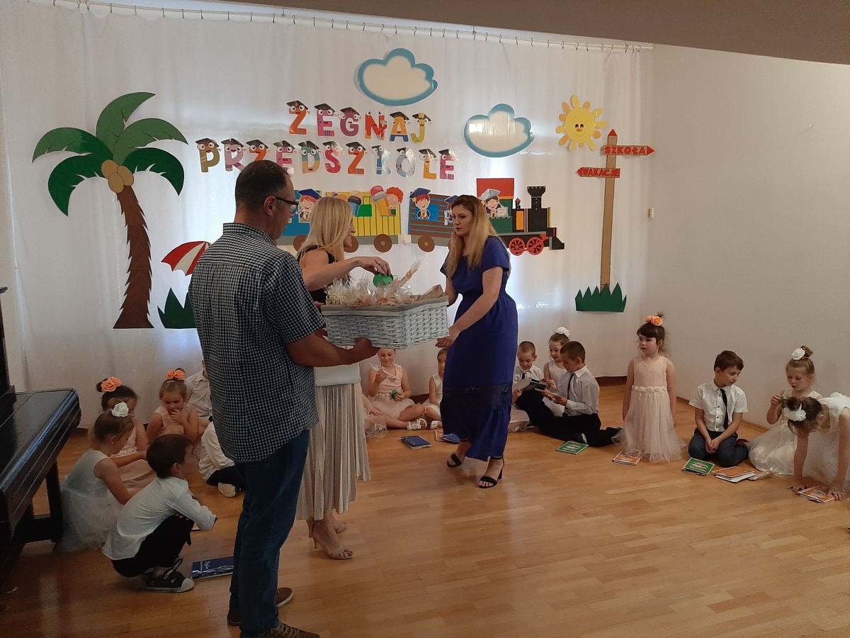 Dnia 20. 06. 2023r odbyła się uroczystość Pożegnania Przedszkola przez starszaków z grupy V Żabki. W przedstawieniu ,,Kącik serc’’ wspomniały zabawy w przedszkolnych kącikach, beztroski czas pobytu w przedszkolu. Następnie dostojnym Polonezem rozpoczęły oficjalną część pożegnania z przedszkolem i podziękowania Dyrekcji , Nauczycielom, Pracownikom za wspólnie spędzone cztery lata. Na zakończenie Pani Dyrektor wręczyła dzieciom dyplomy i upominki oraz podziękowała Rodzicom za wieloletnią współpracę. Rodzice wychowanków na pamiątkę pobytu dzieci w przedszkolu ufundowali i posadzili Drzewko Absolwenta. Następnie wszyscy Goście oraz dzieci zostali zaproszeni na poczęstunek podczas którego wspomnieniom nie było końca. DZIĘKUJEMY!!! PAMIĘTAJCIE O NAS!!! Życzymy słonecznych i bezpiecznych Wakacji!!!