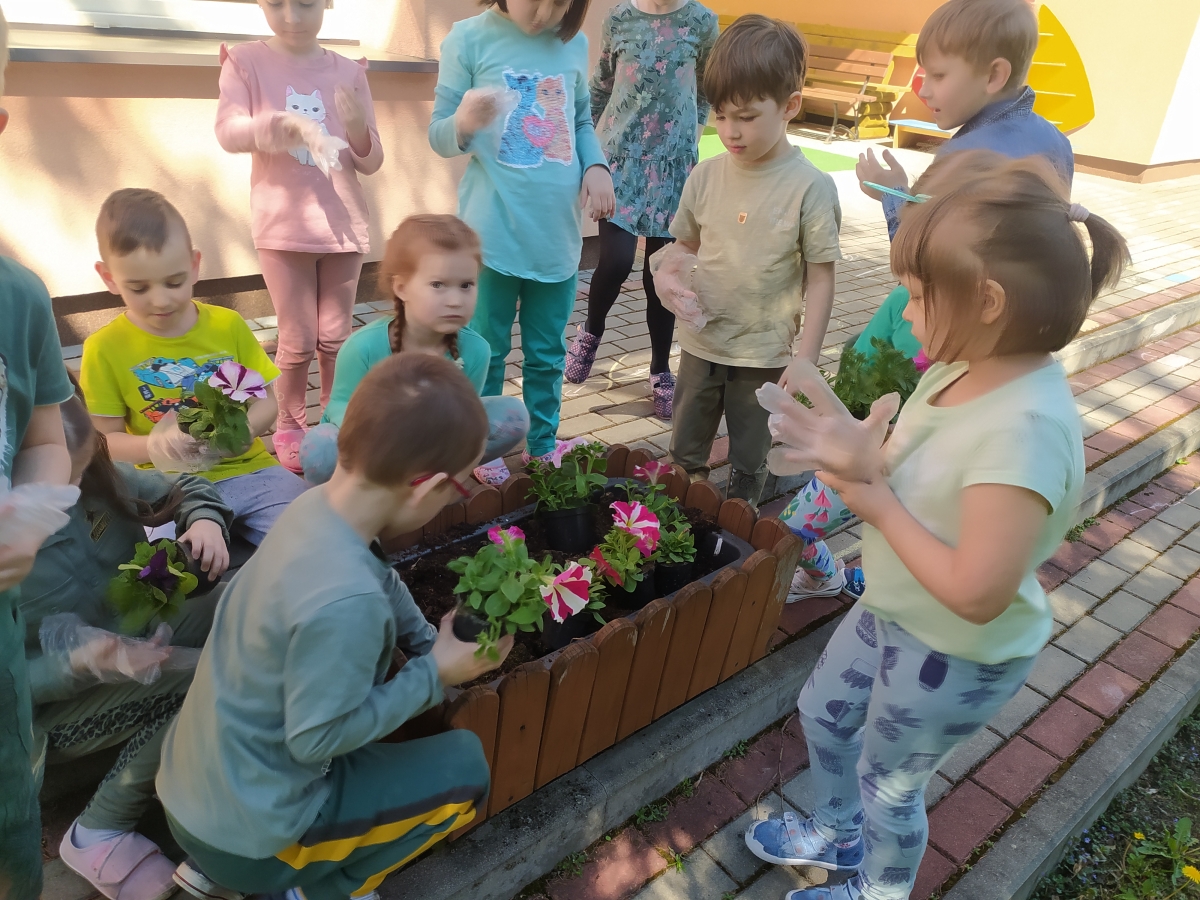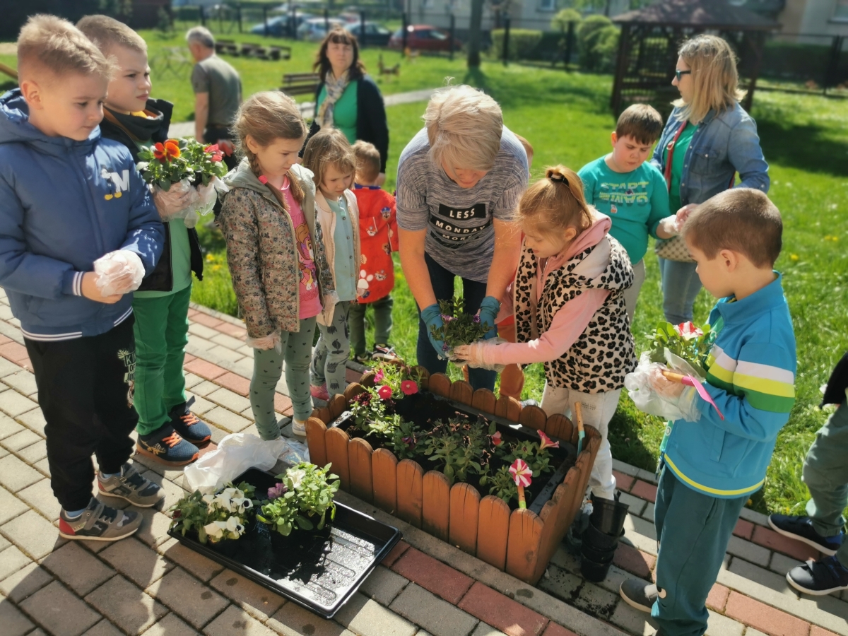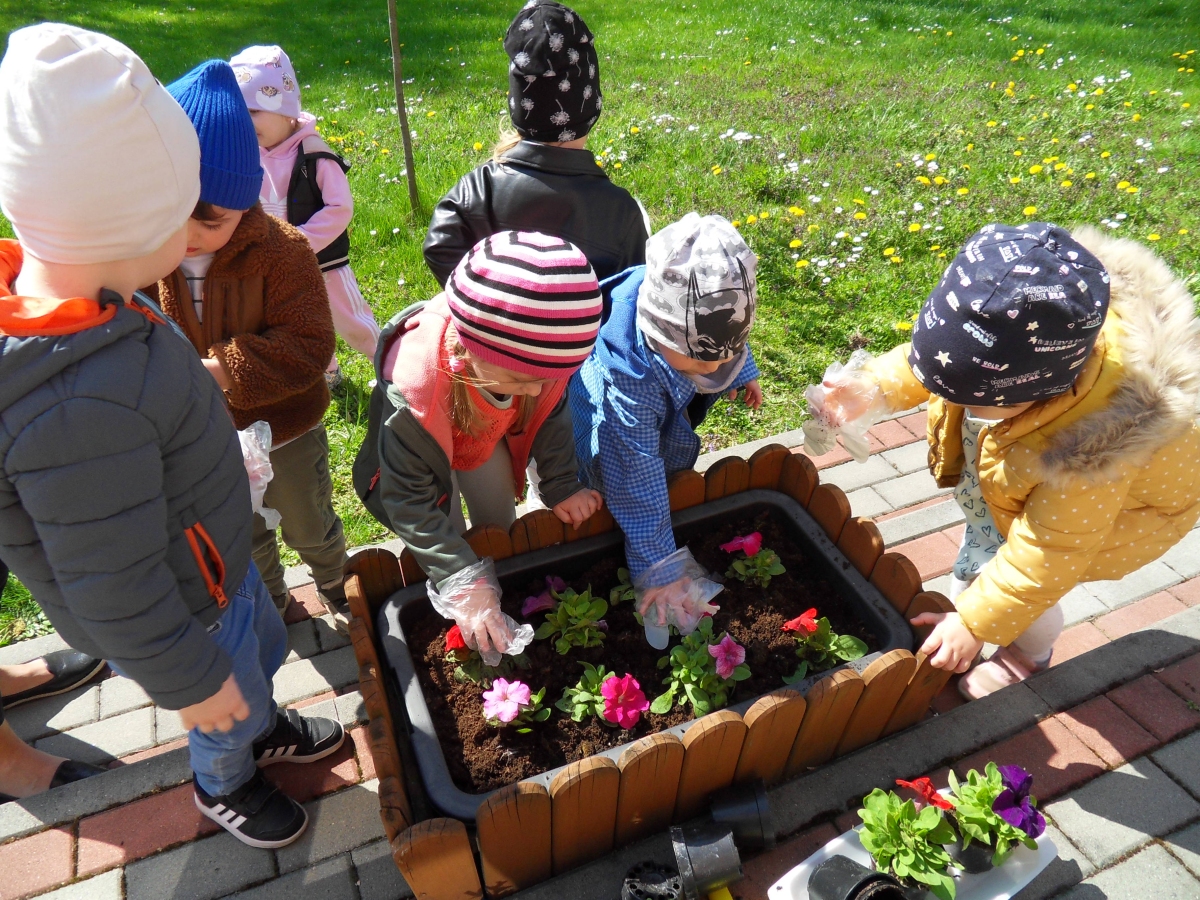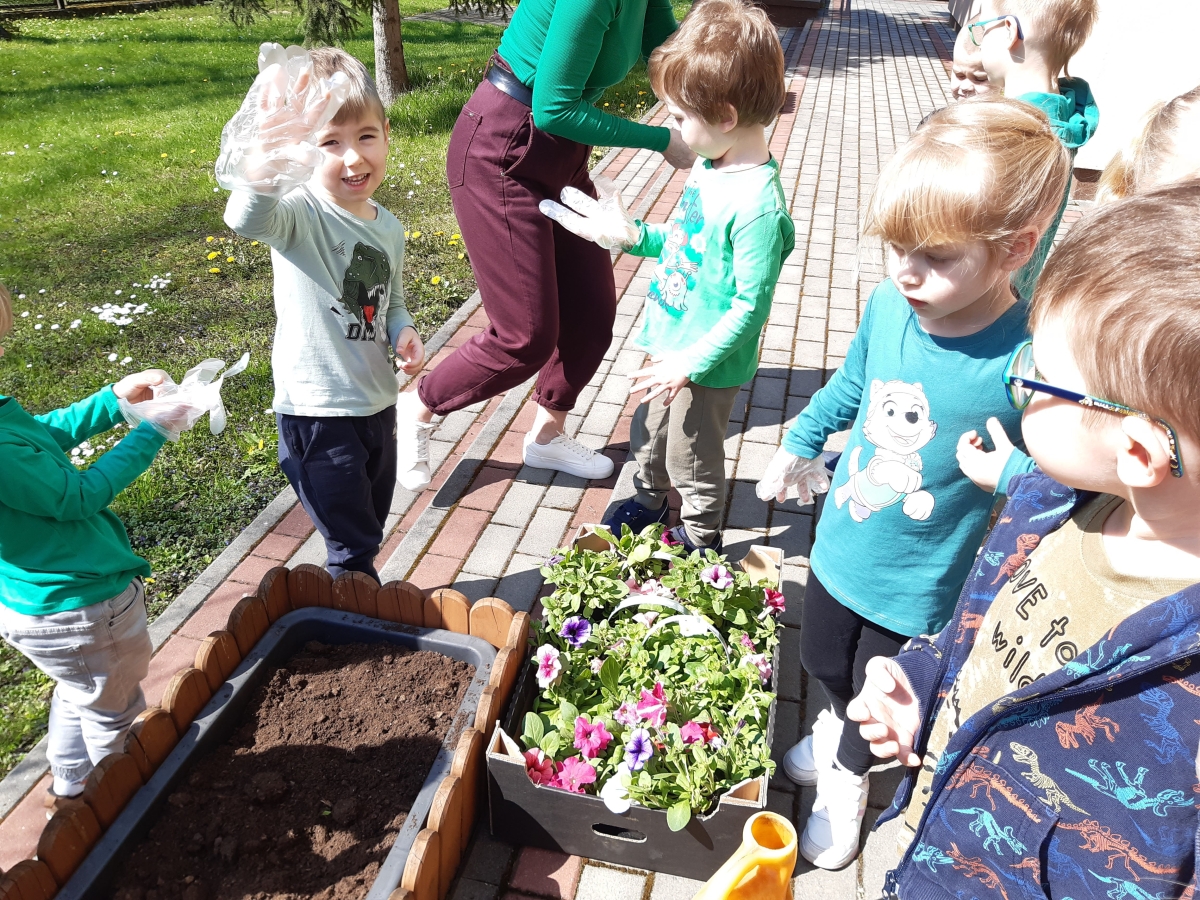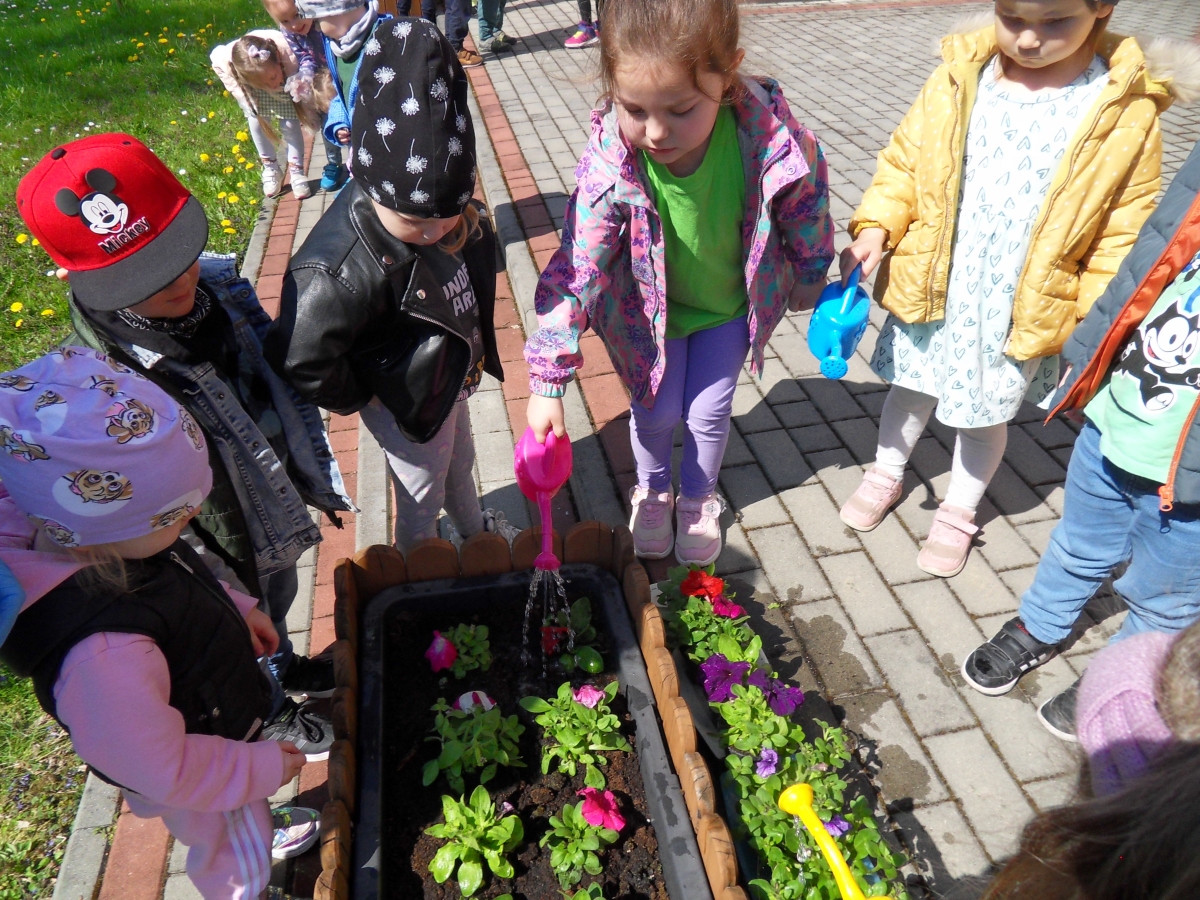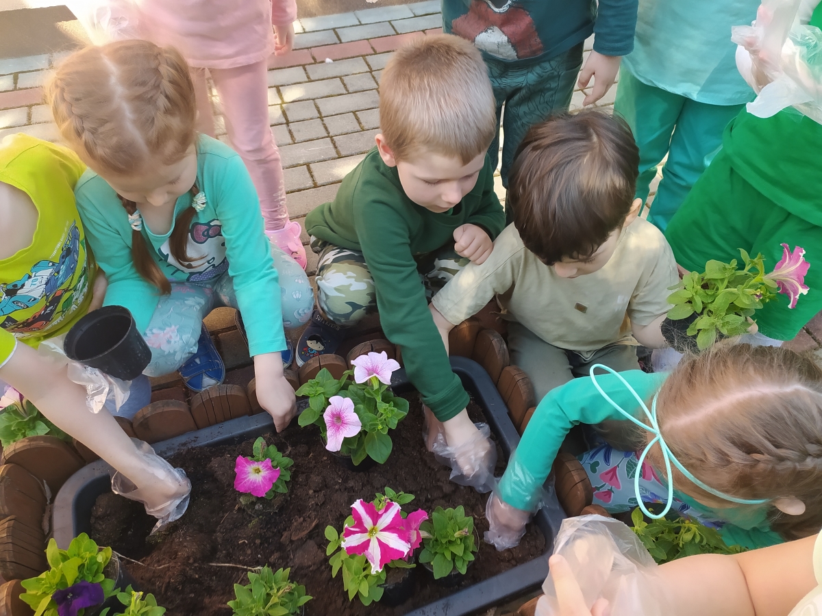 21 kwietnia w naszym przedszkolu obchodziliśmy Międzynarodowy Dzień Ziemi. W tym dniu dominował kolor zielony. Podczas spotkania dzieci dowidziały się jak dbać o środowisko i otaczającą nas przyrodę. Uczestniczyliśmy w happeningu w pobliżu naszego przedszkola, którego celem było promowanie m. in. segregacji odpadów dla społeczności lokalnej. Celem tego wydarzenia jest kształtowanie postaw proekologicznych, rozwijanie wrażliwości na otaczający świat. Na zakończenie włączyliśmy się w akcję sadzenia kwiatów (petunii) w naszym ogrodzie przedszkolnym. Rodzicom dziękujemy za pomoc!