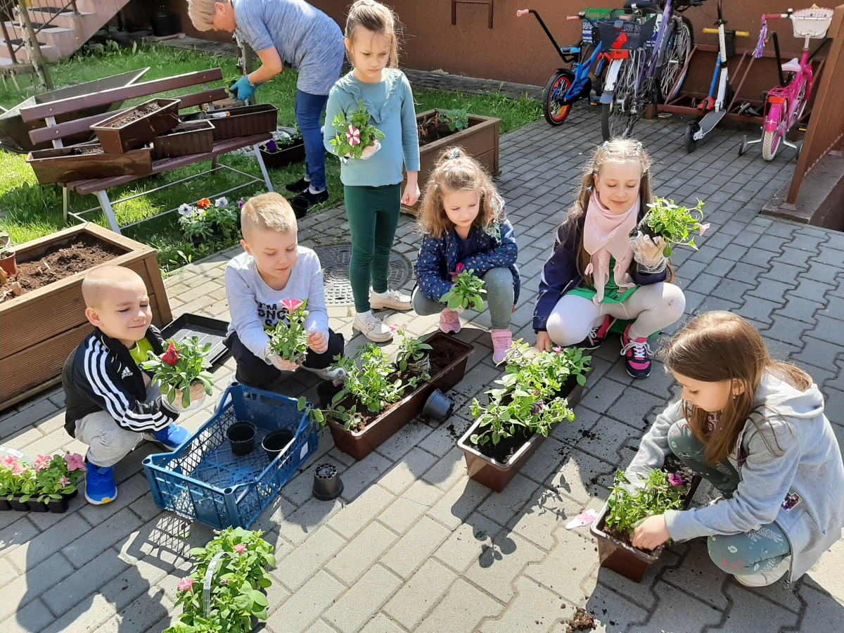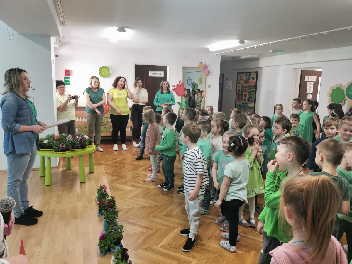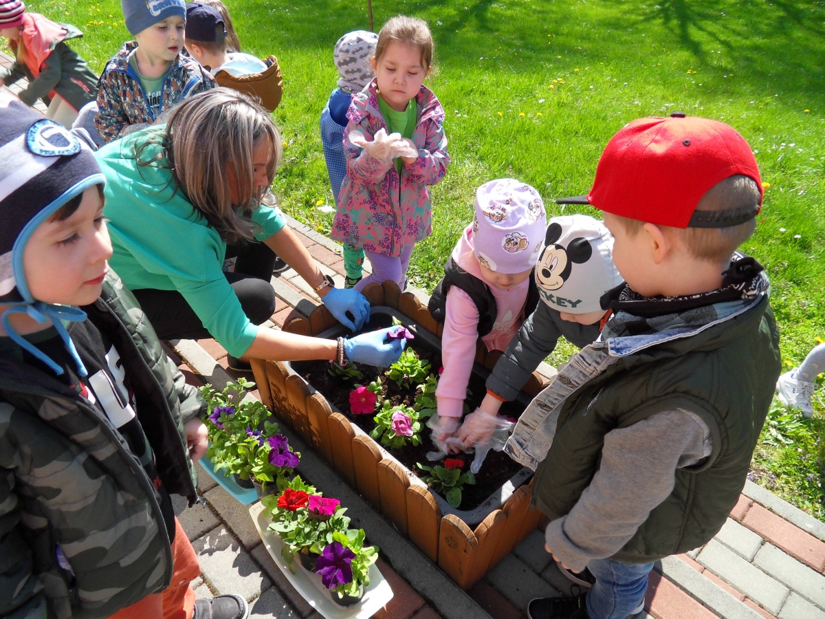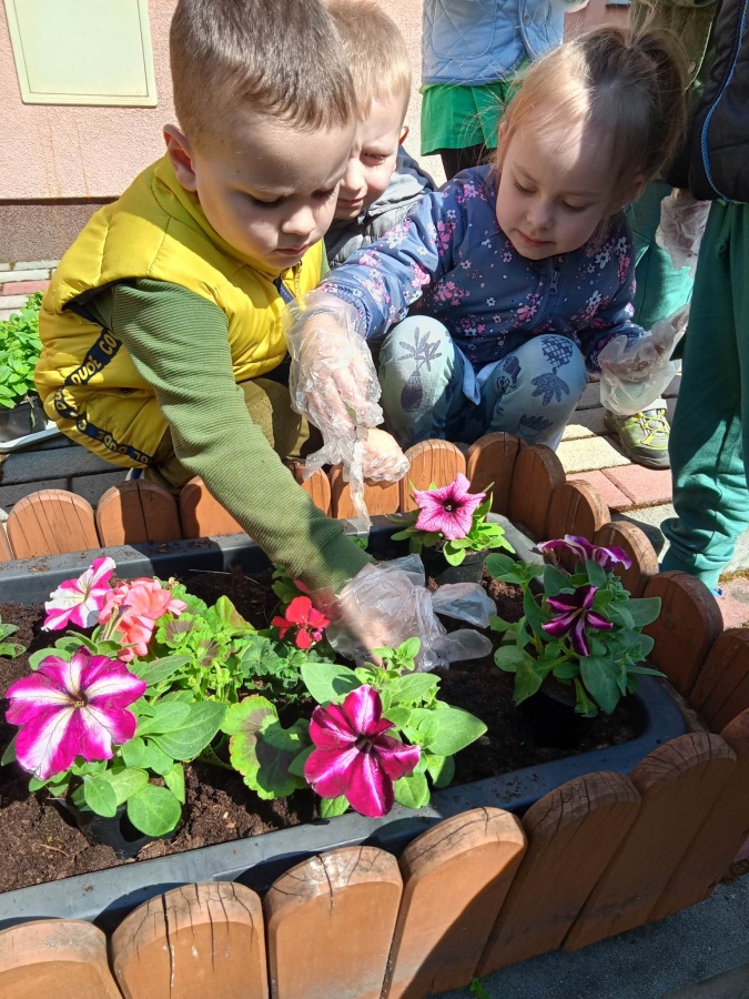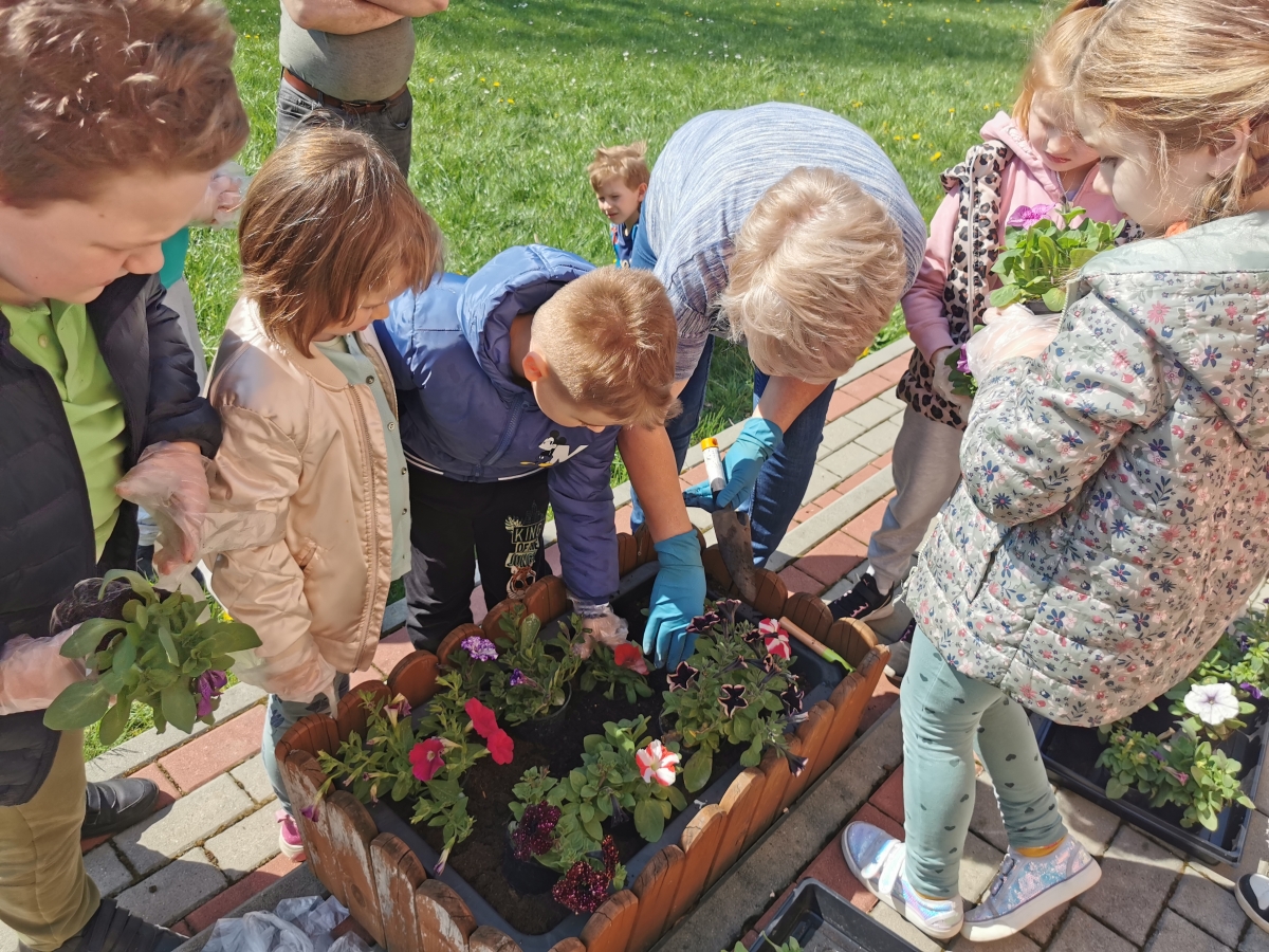 21 kwietnia w naszym przedszkolu obchodziliśmy Międzynarodowy Dzień Ziemi. W tym dniu dominował kolor zielony. Podczas spotkania dzieci dowidziały się jak dbać o środowisko i otaczającą nas przyrodę. Uczestniczyliśmy w happeningu w pobliżu naszego przedszkola, którego celem było promowanie m. in. segregacji odpadów dla społeczności lokalnej. Celem tego wydarzenia jest kształtowanie postaw proekologicznych, rozwijanie wrażliwości na otaczający świat. Na zakończenie włączyliśmy się w akcję sadzenia kwiatów (petunii) w naszym ogrodzie przedszkolnym. Rodzicom dziękujemy za pomoc!