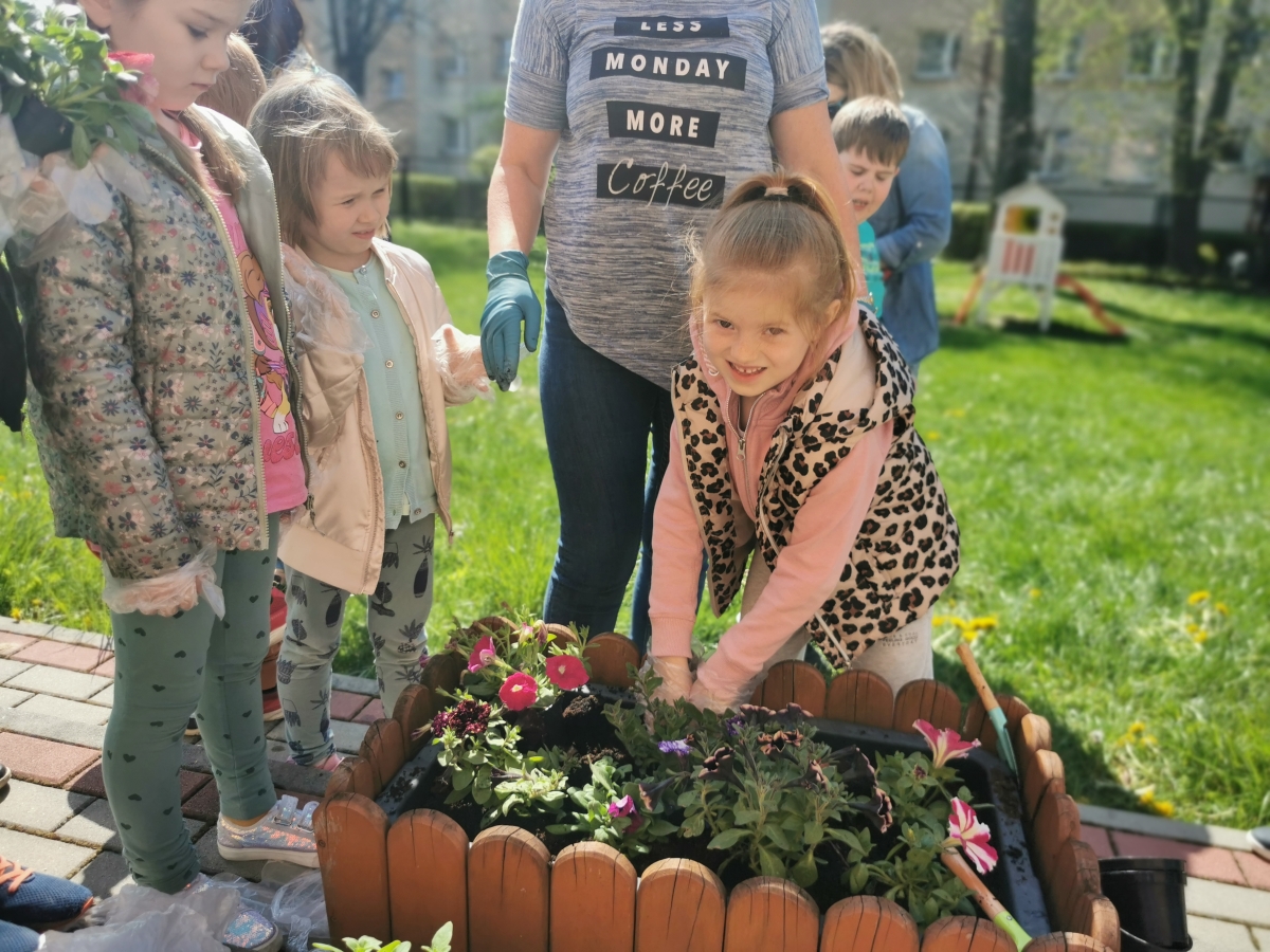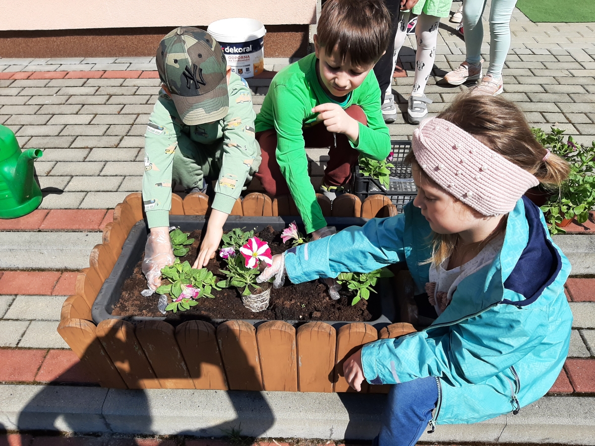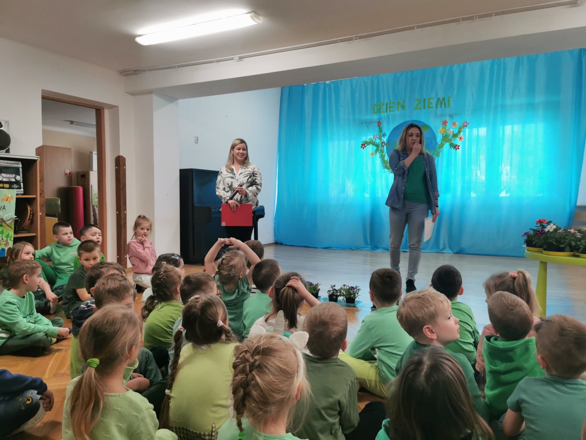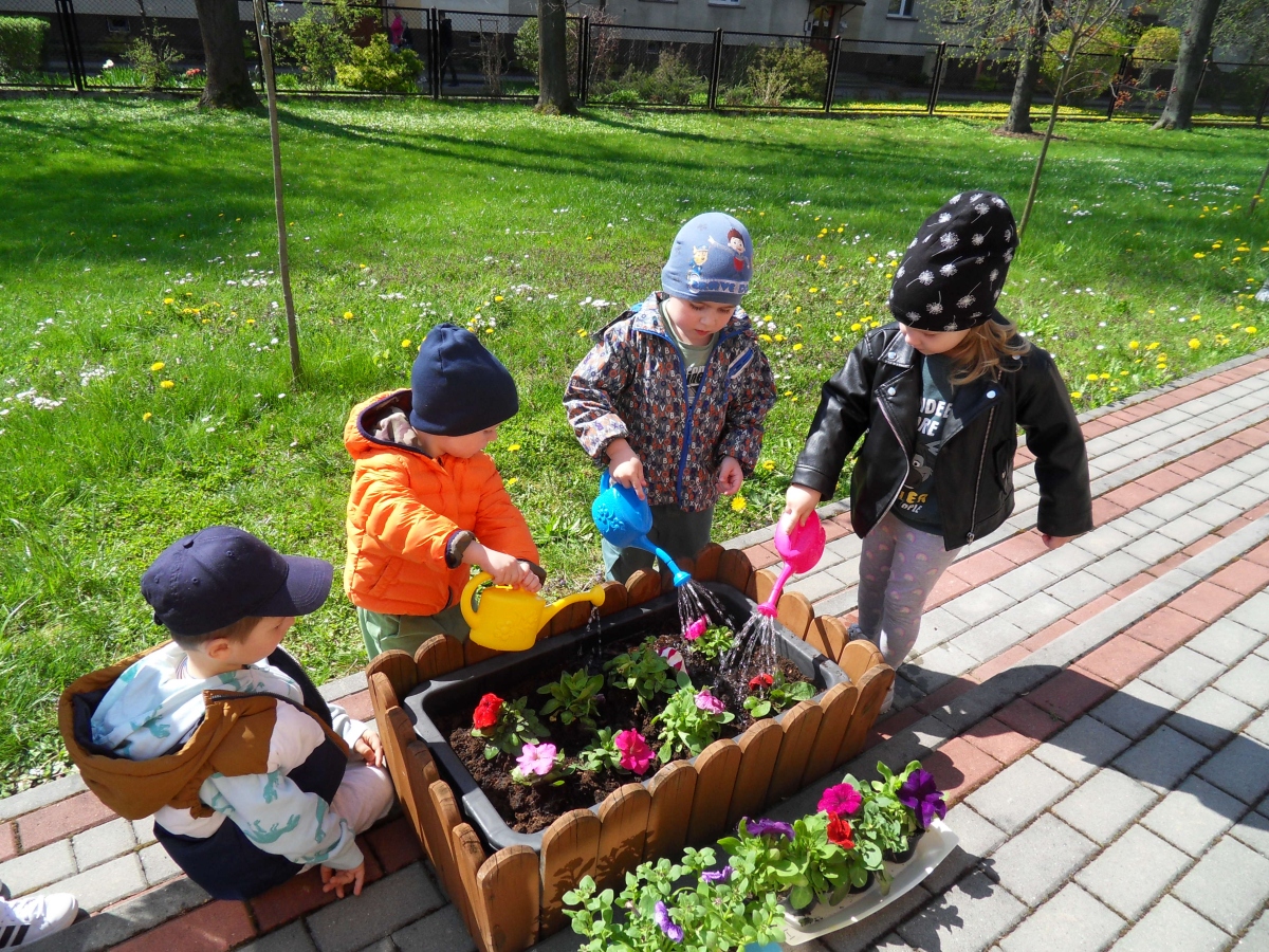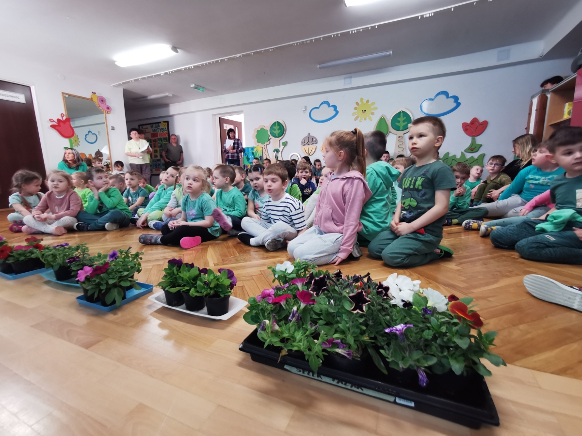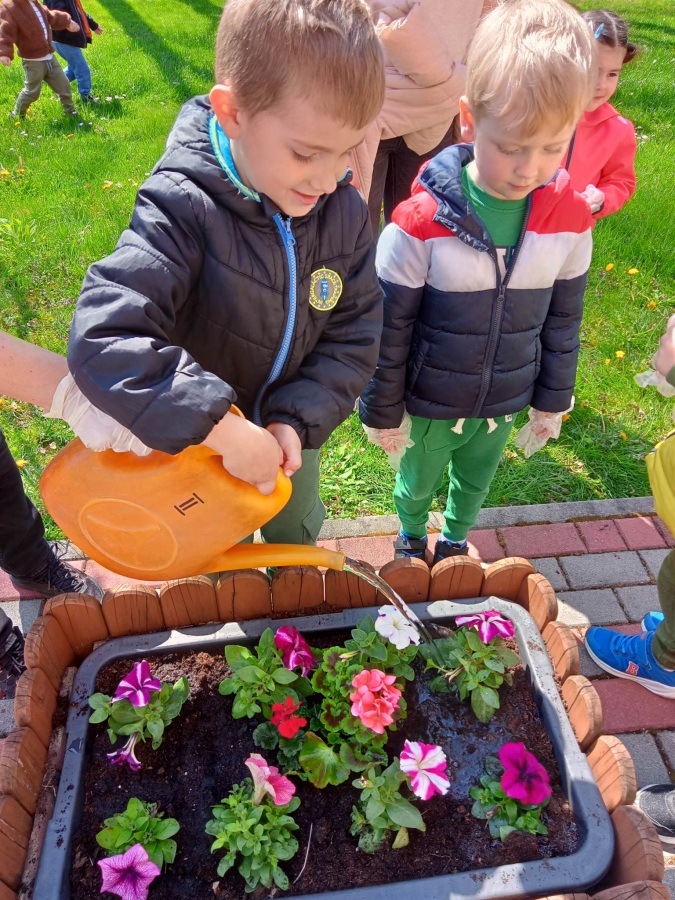 21 kwietnia w naszym przedszkolu obchodziliśmy Międzynarodowy Dzień Ziemi. W tym dniu dominował kolor zielony. Podczas spotkania dzieci dowidziały się jak dbać o środowisko i otaczającą nas przyrodę. Uczestniczyliśmy w happeningu w pobliżu naszego przedszkola, którego celem było promowanie m. in. segregacji odpadów dla społeczności lokalnej. Celem tego wydarzenia jest kształtowanie postaw proekologicznych, rozwijanie wrażliwości na otaczający świat. Na zakończenie włączyliśmy się w akcję sadzenia kwiatów (petunii) w naszym ogrodzie przedszkolnym. Rodzicom dziękujemy za pomoc!