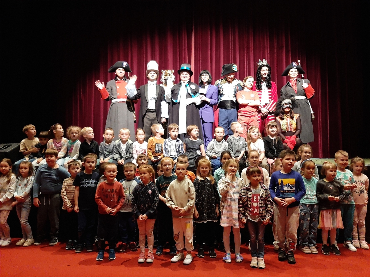 Dziś przedszkolaki wybrały się do Teatru im. Ludwika Solskiego w Tarnowie 🎭 gdzie miały okazję obejrzeć spektakl pt. „Król Maciuś I” 🤴🏼 Dla niektórych z nich była to pierwsza wizyta w Teatrze. Z uwagą oglądały spektakl, na koniec podziękowały gromkimi brawami. Dodatkowo grupy starsze miały okazję poznać Teatr „od środka” Dowiedziały się iż Teatr to tajemnicze i intrygujące miejsce, jakie sekrety kryją się w kulisach sceny, jak wygląda proces powstawania spektaklu, gdzie i jak tworzy się dekoracja oraz rekwizyty. A także: kto szyje te wszystkie piękne kostiumy, kto pomaga aktorom się przebrać, a kto ich czesze i maluje, kim jest sufler, inspicjent czy scenograf.